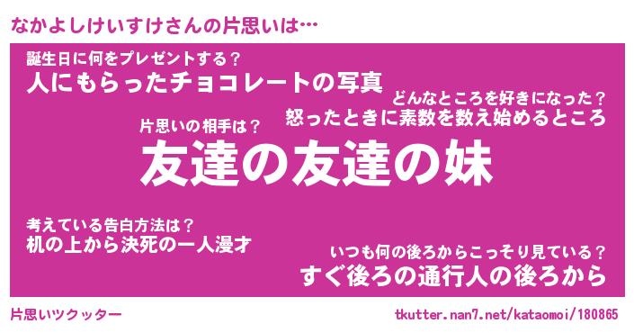 | 男性向けラノベタイトル風あだ名 | 『ナカヨシケイスケアートオンライン』 |