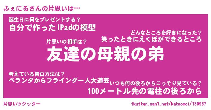 | 胡散臭い通販商品みたいなあだ名 | 『億万長者になれるブレスレット…その名も「ふぇにる」』 |