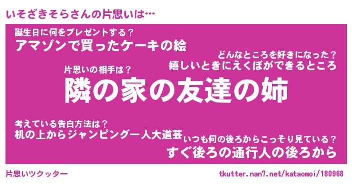 | 胡散臭い通販商品みたいなあだ名 | 『必ず成功する霊験あらたかなお札…その名も「いそざきそら」』 |