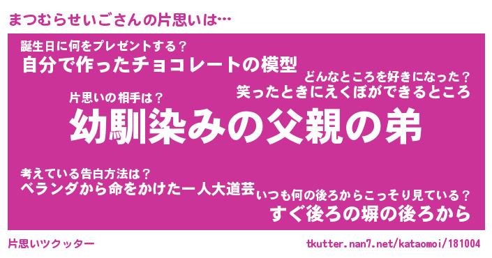 | 胡散臭い通販商品みたいなあだ名 | 『必ず成功する水晶球…その名も「まつむらせいご」』 |