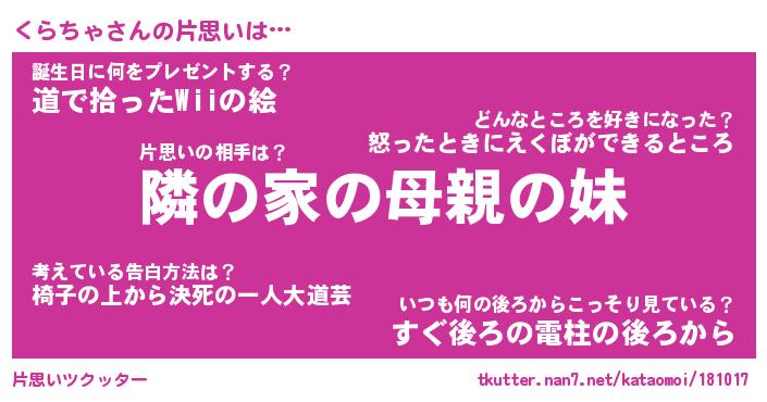 | 胡散臭い通販商品みたいなあだ名 | 『必ず成功するブレスレット…その名も「くらちゃ」』 |