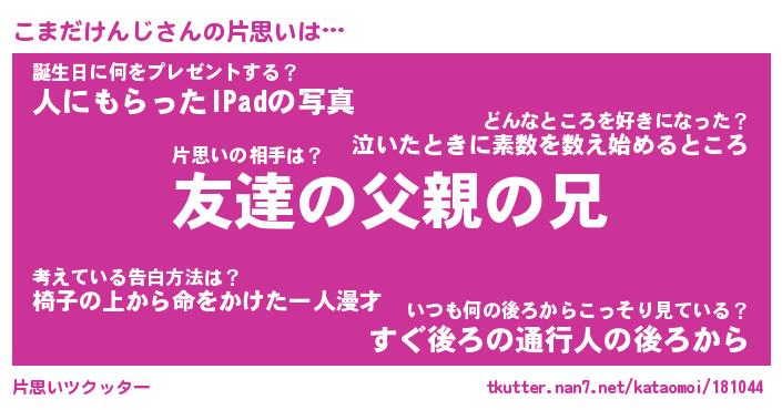 | 胡散臭い通販商品みたいなあだ名 | 『億万長者になれる水晶球…その名も「こまだけんじ」』 |