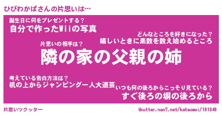 | 胡散臭い通販商品みたいなあだ名 | 『必ず成功する水晶球…その名も「ひびわかば」』 |