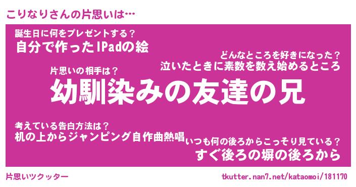 | ファンタジー風あだ名 | 『コリフェル』『エターナルコリナリー』 |
