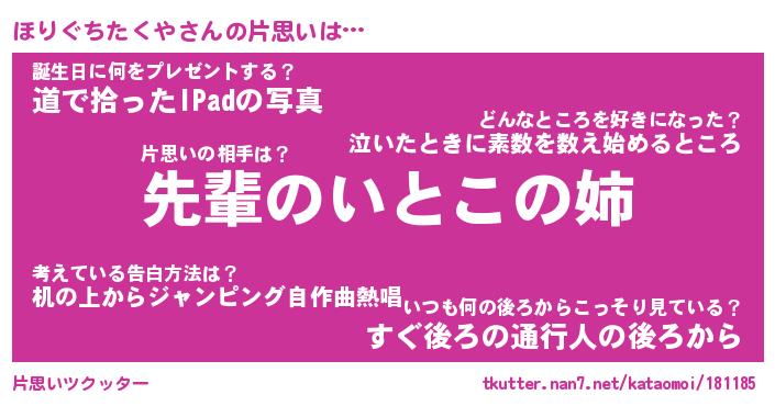 | ツイッター | ほりぐちたくやさんのツイッターID『katatsumuri_kun』 |