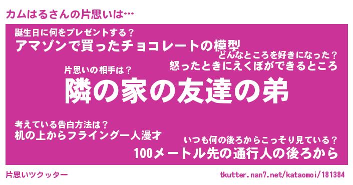 | 胡散臭い通販商品みたいなあだ名 | 『必ず成功する霊験あらたかなお札…その名も「カムはる」』 |