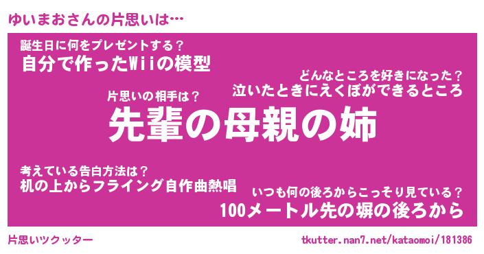 | 意味不明あだ名 | 『ペロリンゆいまお』『永久保存ゆいまお』 |