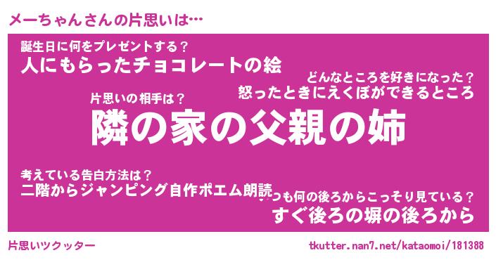ファンタジー風あだ名 | 『メーフェル』『エターナルメーチャンー』 |