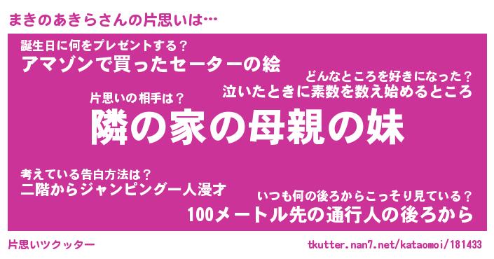 | 胡散臭い通販商品みたいなあだ名 | 『モテモテ間違いなしブレスレット…その名も「まきのあきら」』 |
