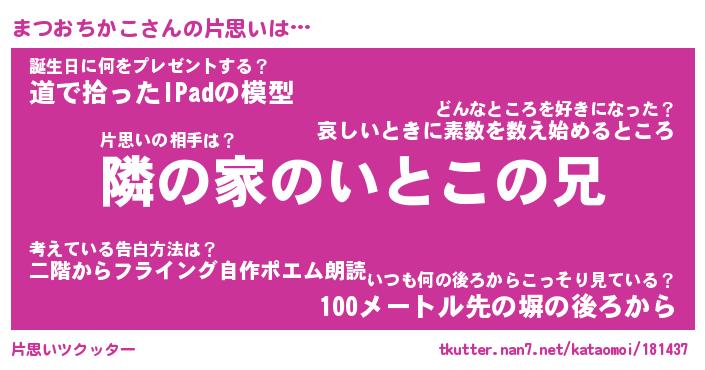 | 胡散臭い通販商品みたいなあだ名 | 『必ず成功する霊験あらたかなお札…その名も「まつおちかこ」』 |