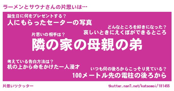 | 意味不明あだ名 | 『ペロリンラーメンとサウナ』 |