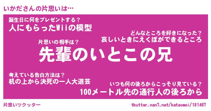 | 胡散臭い通販商品みたいなあだ名 | 『モテモテ間違いなし水晶球…その名も「いかだ」』 |