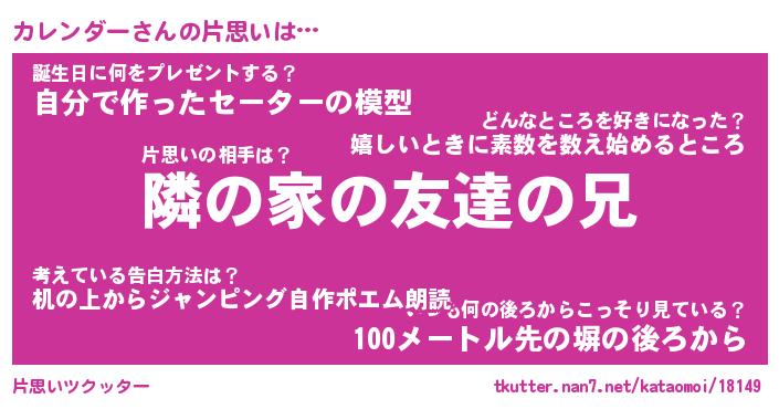 | ファンタジー風あだ名 | 『カレフェル』『エターナルカレンダーー』 |