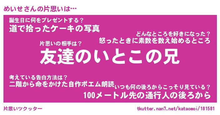 | ヘコむあだ名 | 『めいもー』『なまこ酢』『めい太郎』 |
