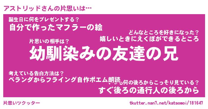 | 胡散臭い通販商品みたいなあだ名 | 『必ず成功する霊験あらたかなお札…その名も「アストリッド」』 |