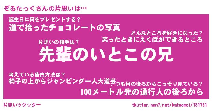 | ヘコむあだ名 | 『ぞるにゅー』『なまこ酢』『ぞるを』 |