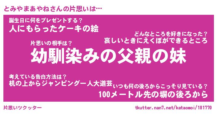 | 女子向けラノベタイトル風あだ名 | 『(仮)とみやまあやねのやんごとなき事情』 |