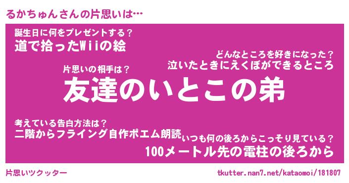 | 胡散臭い通販商品みたいなあだ名 | 『億万長者になれる水晶球…その名も「るかちゅん」』 |