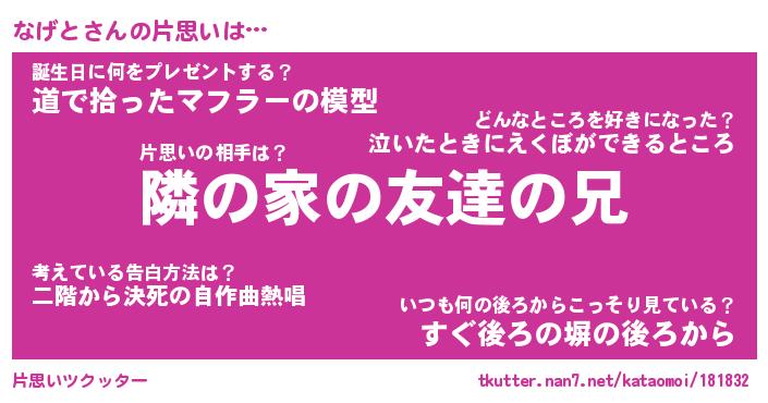 | ヘコむあだ名 | 『なげっふぃ~』『豆乳』『なげっ子』 |