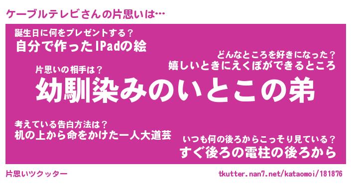 | 女子向けラノベタイトル風あだ名 | 『(仮)ケーブルテレビのやんごとなき事情』 |