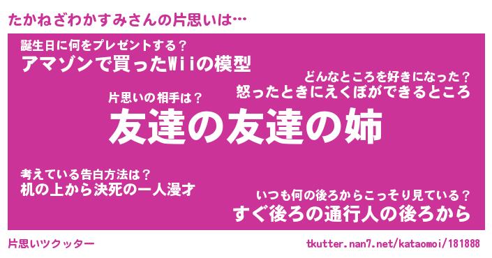 | ヘコむあだ名 | 『たかっふぃ~』『酢こんぶ』 |