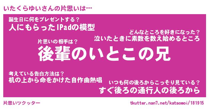 | ヒーロー風カッコイイあだ名 | 『スーパーイタクラユイ』『黄金騎士イタ』 |