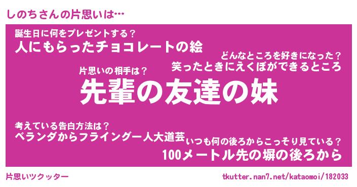 | 男性向けラノベタイトル風あだ名 | 『しのちの憂鬱』 |