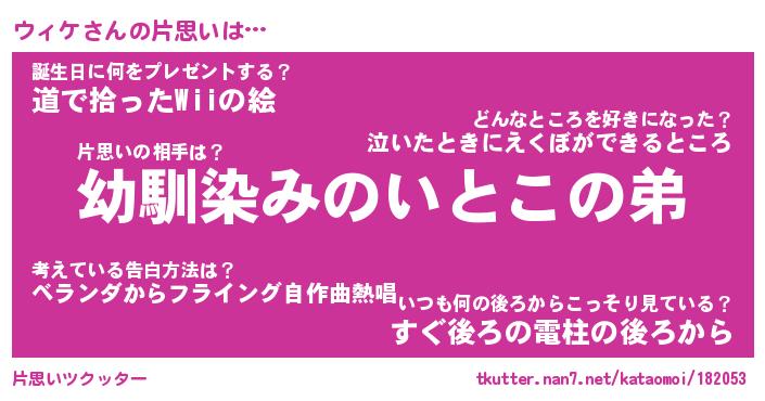 | ポケモン風あだ名 | 『ウィチュウ』『ウィケダネ』 |