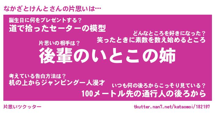 | 男性向けラノベタイトル風あだ名 | 『ナカザトケントアートオンライン』 |