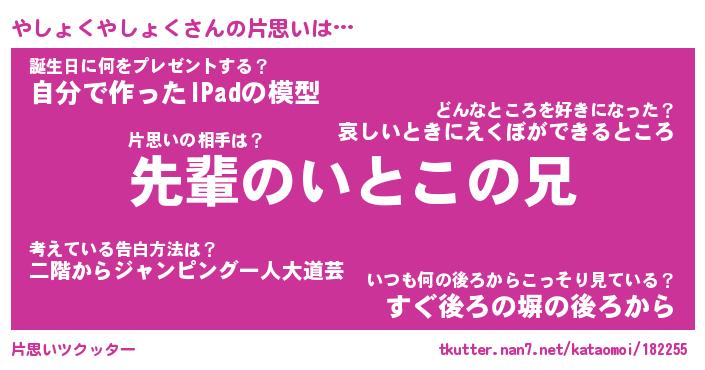 | 胡散臭い通販商品みたいなあだ名 | 『モテモテ間違いなし水晶球…その名も「やしょくやしょく」』 |