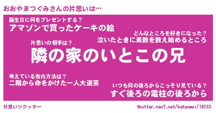 | 胡散臭い通販商品みたいなあだ名 | 『必ず成功する水晶球…その名も「おおやまつぐみ」』 |