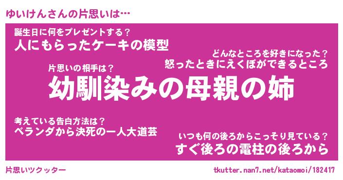 | 男性向けラノベタイトル風あだ名 | 『ゆいけんの憂鬱』 |