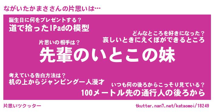 | 胡散臭い通販商品みたいなあだ名 | 『モテモテ間違いなし霊験あらたかなお札…その名も「ながいたかまさ」』 |