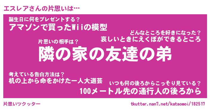 | 意味不明あだ名 | 『ペロリンエスレア』『永久保存エスレア』 |