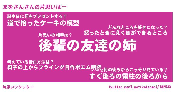 | 意味不明あだ名 | 『ペロリンまをさん』『永久保存まをさん』 |