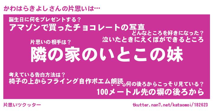 | 男性向けラノベタイトル風あだ名 | 『かわはらきよしの憂鬱』 |