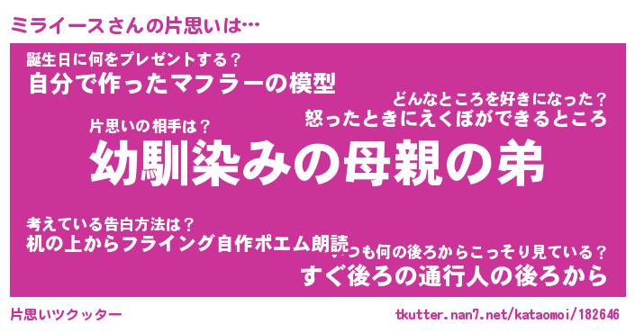| ヘコむあだ名 | 『ミラにー』『牛乳』『ミラぷりん』 |