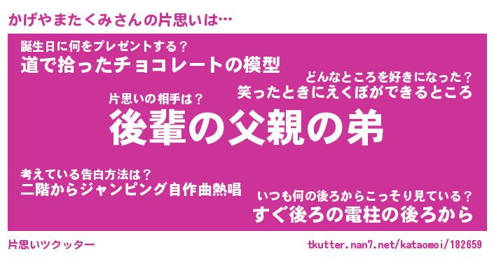 | ツイッター | かげやまたくみさんのツイッターID『namakemono_idle』 |