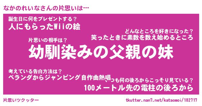| 男性向けラノベタイトル風あだ名 | 『なかのれいなの憂鬱』 |