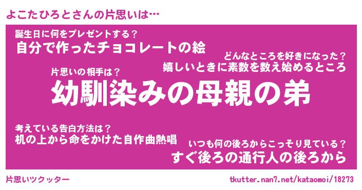 | 女子向けラノベタイトル風あだ名 | 『(仮)よこたひろとのやんごとなき事情』 |