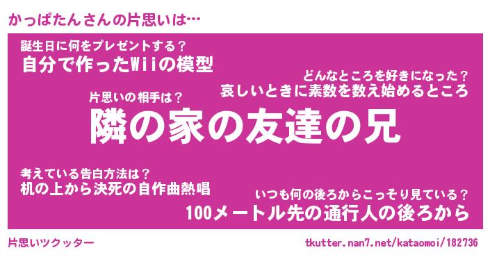 | 胡散臭い通販商品みたいなあだ名 | 『モテモテ間違いなし霊験あらたかなお札…その名も「かっぱたん」』 |