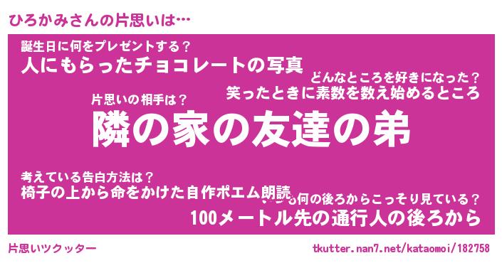 | ポケモン風あだ名 | 『ヒロチュウ』『ヒロカダネ』 |