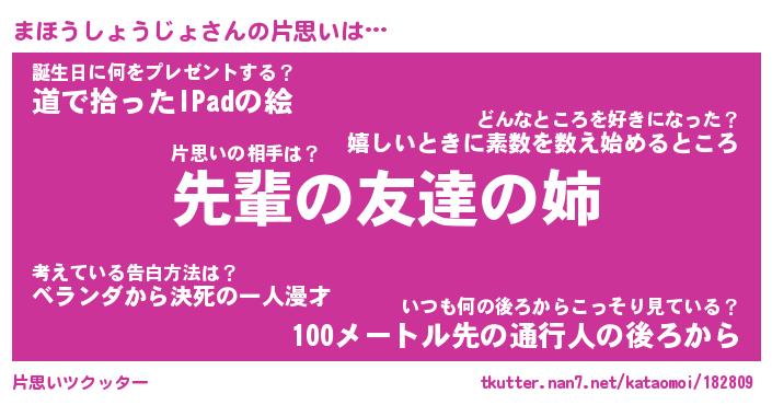 | ツイッター | まほうしょうじょさんのツイッターID『katatsumuri_nyan』 |