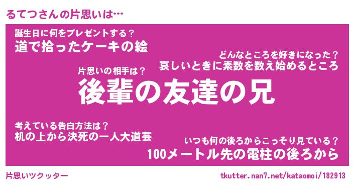 | ヘコむあだ名 | 『るてっふぃ~』『豆乳』『るてお』 |