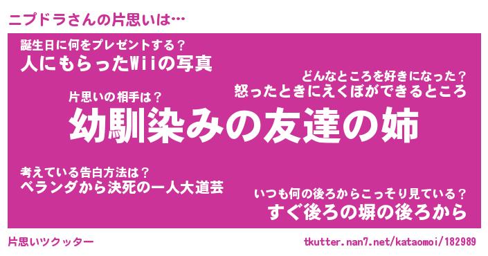 | ヘコむあだ名 | 『ニプもー』『牛乳』『ニプっぺ』 |