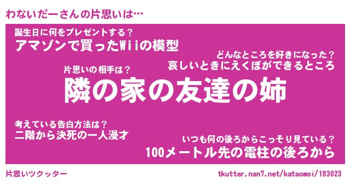 | 胡散臭い通販商品みたいなあだ名 | 『必ず成功する霊験あらたかなお札…その名も「わないだー」』 |