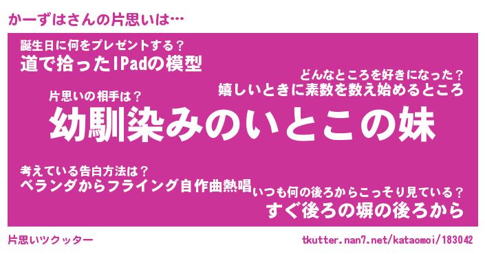 | 男性向けラノベタイトル風あだ名 | 『かーずはの憂鬱』 |