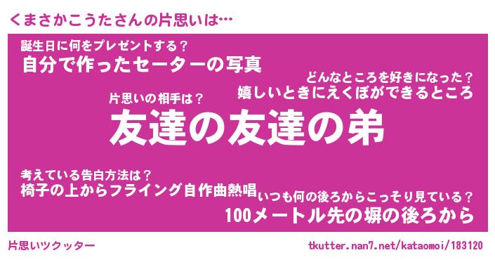 | 伝説のあだ名 | 『封印されしスナイパーくまさかこうた』 |