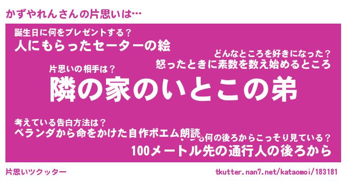 | 2回繰り返すあだ名 | 『かずかず』『かかずず』『おやおや』 |