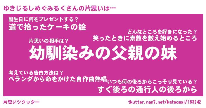 | 男性向けラノベタイトル風あだ名 | 『ゆきじるしめぐみるくの憂鬱』 |
